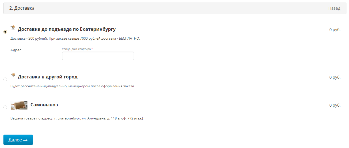 - Оформление заказа через корзину – если для вас важна каждая мелочь и вы хотите подробно описать процесс доставки и оплаты, то используйте стандартный функционал оформления заказа через корзину сайта.